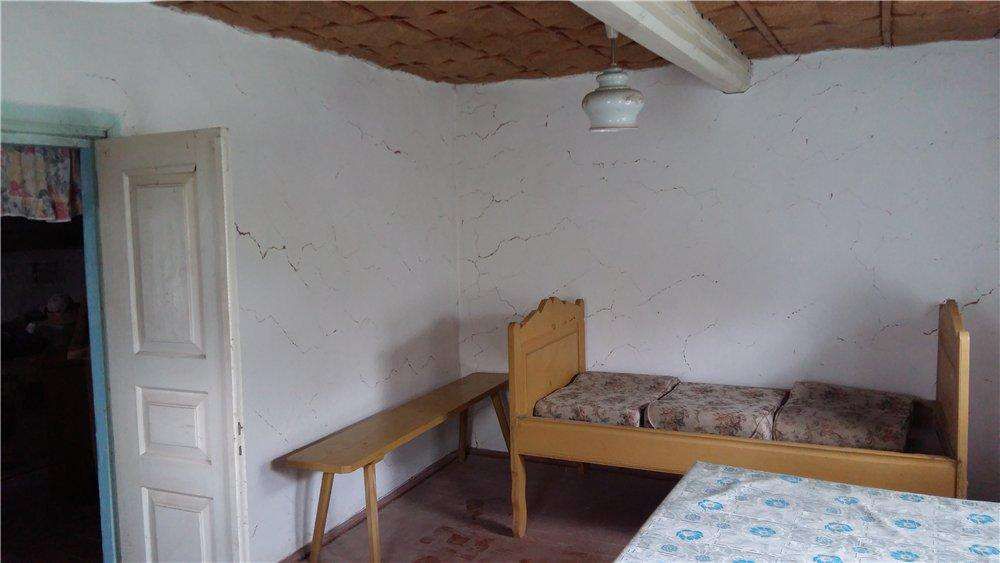 Дом деревянный, обложенный кирпичем под шубу, крыша - шифер (перекрыт в 1989 году), с печью и плитой, внутри побелка, пол деревянный, общая площадь 79,4 (комната 17.9, кухня 15.8, две кладовые 15.2 и 7.0, коридор 9.3, веранда 14.2). Подведено електричество, газ балонный.