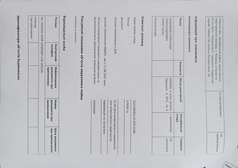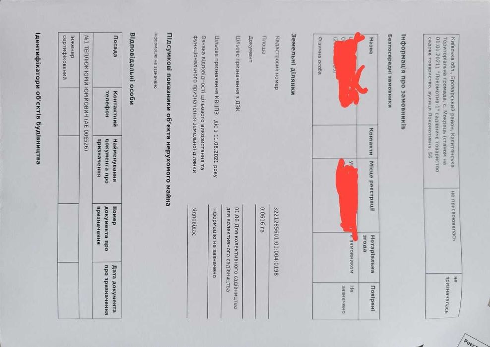 | Земельна ділянка: |