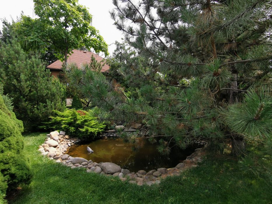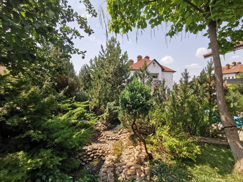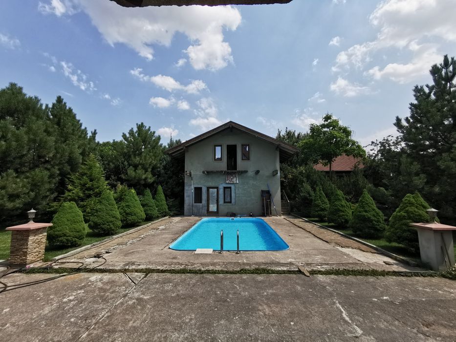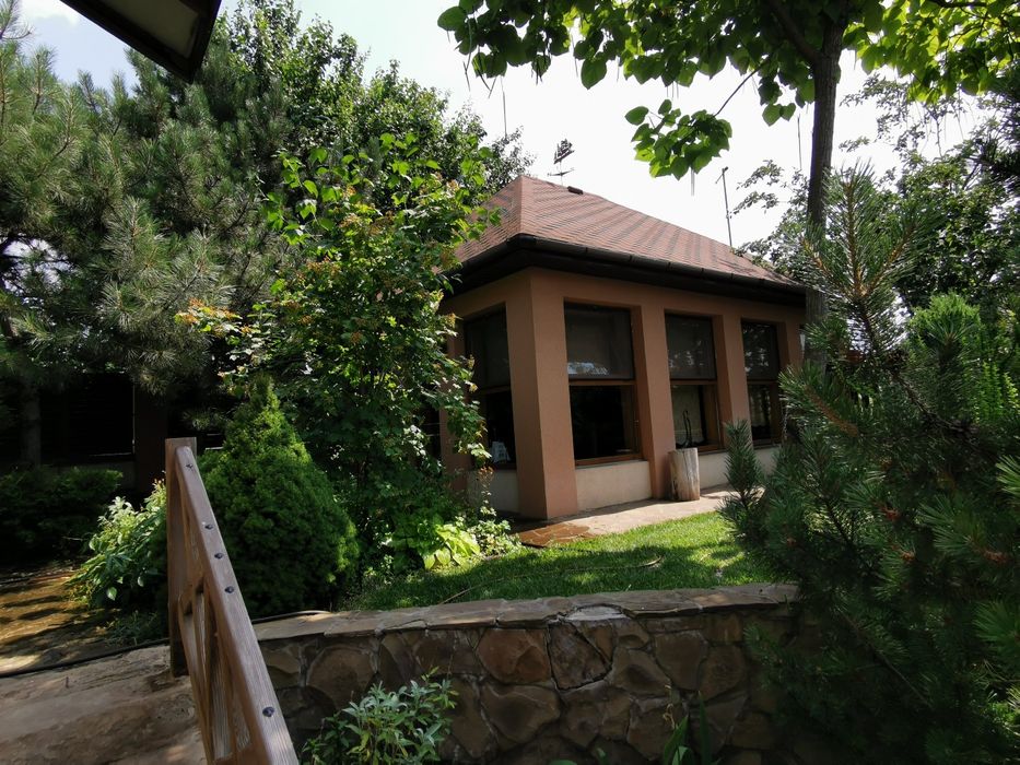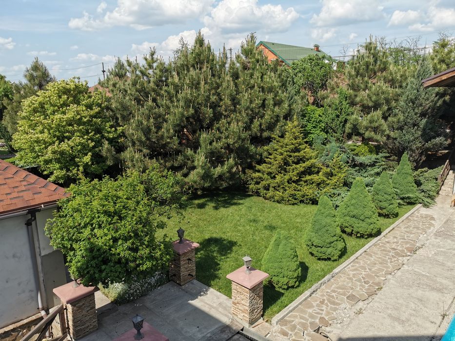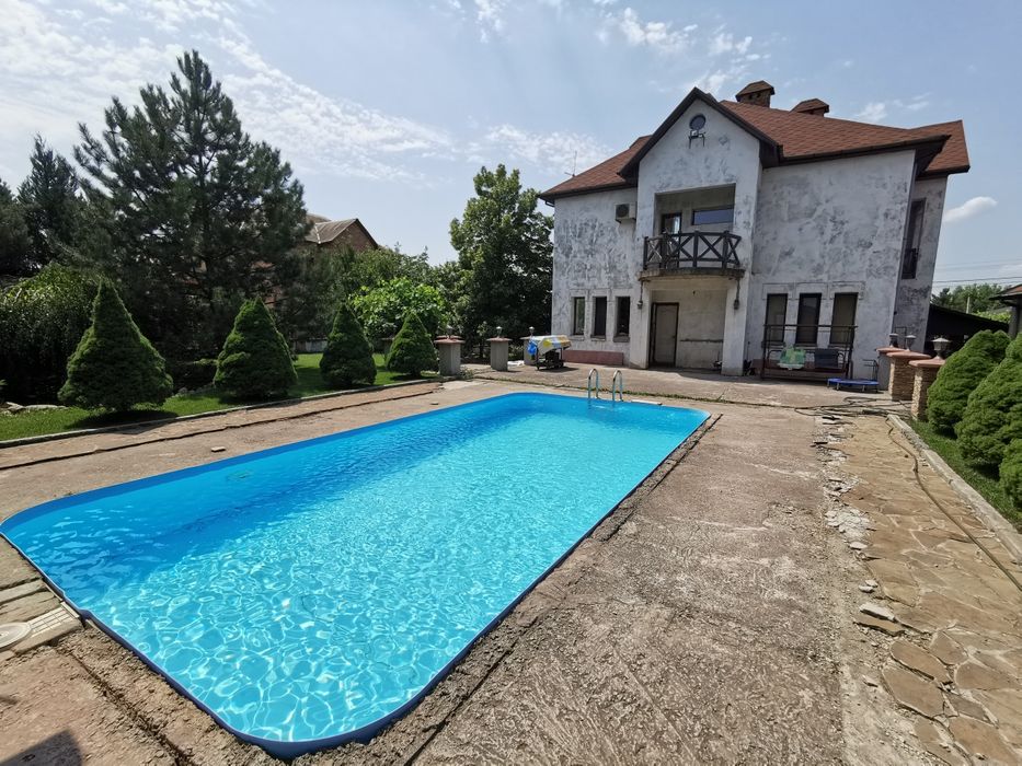 Продам дом в с. Вольное (Червоний шахтарь).; Дом в хорошем месте с видом на водохранилище, ландшафтный дизайн, имеется автоматическй полив, бассейн 4×8 м, сауна, гостевой дом, капитальный вольер, сарай, гараж. Требуется отделка фасада.