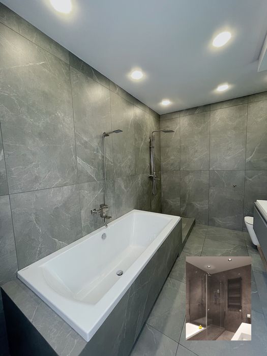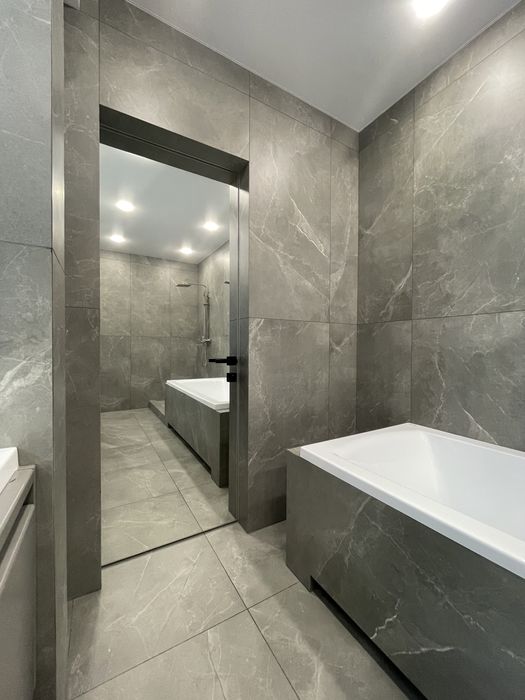 •Отделка стен - гидроизоляция, европейский крупноформатный керамогранит.