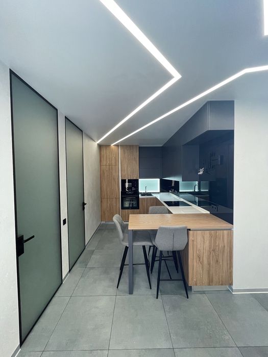 •Просторная кухня с обеденной зоной. Вся фурнитура в кухне - Blum! Гарантия на всю фурнитуру еще 7 лет. Встроенный холодильник с морозильной камерой(на гарантии еще 2 года). Встроенная Духовой шкаф Gorenje. Встроенная Микроволновая печь Gorenje. Встроенная Посудомоечная машина 60 Bosh. Индукционная варочная поверхность Bosh.Встроенная вытяжка.