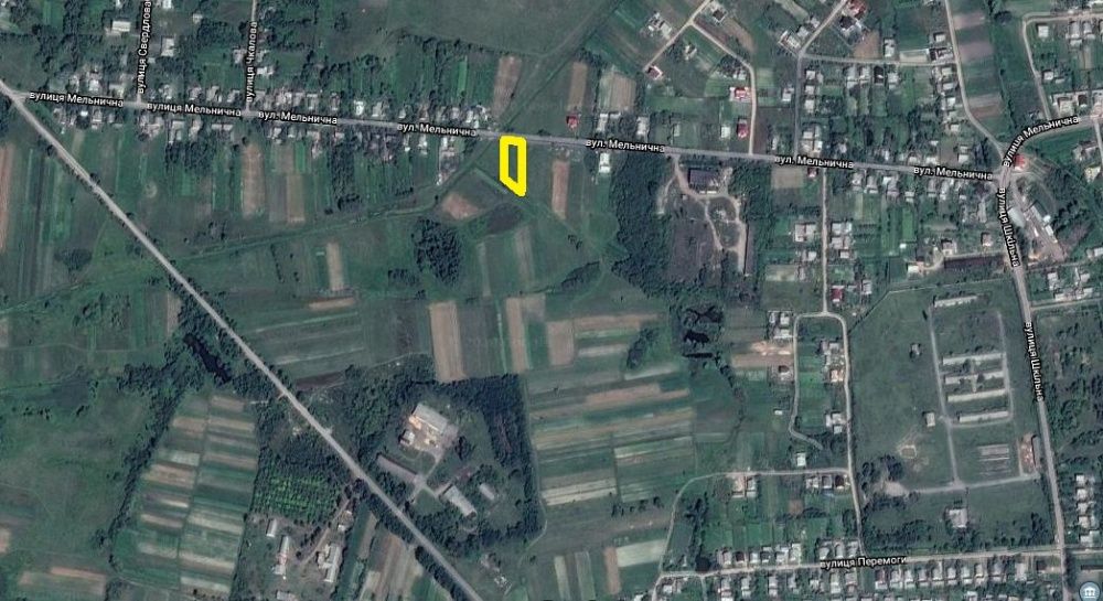 Земельна ділянка під забудову, вул.Мельнична, 15 соток; Земельна ділянка по вул.Мельнична, під забудову. Поряд - початок с.Новосілки. Умовне позначення ділянки на карті - на фото.
