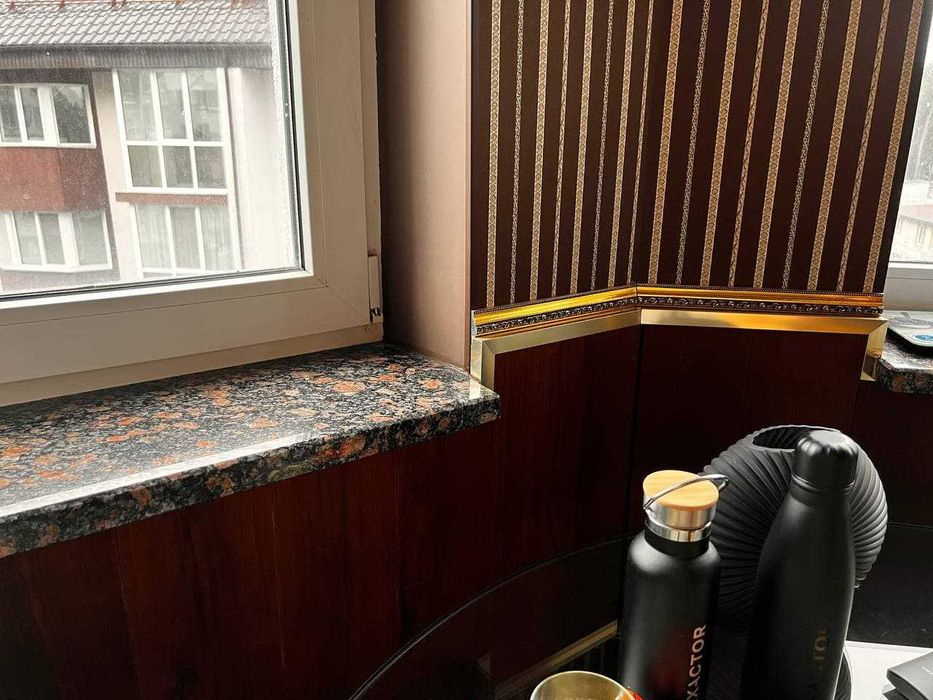Підвіконня – білий мармур у кімнаті, граніт на кухні.