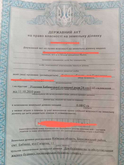 Земельна ділянка 0.09 га; Земельна ділянка розташована по вул. Отамана Орлика (Гагаріна,) 11 смт. Бабинці, в центрі селища. Поряд сусіди будуються.; кадастровий номер: 3221055300:02:014