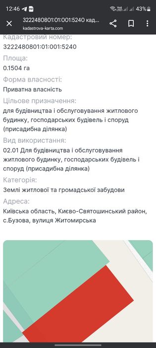 Продаж земельної ділянки; Продається земельна ділянка під забудову. За адресою обл. Київська, К-Святошинський район, с. Будова, вул. Житомирська,. Швидкий продаж, з документами все ок.