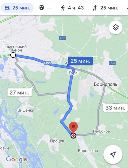 Удобный заезд, 25 мин от метро Бориспольская, регулярно ходит маршрутка. 20 мин до аэропорта Борисполь.