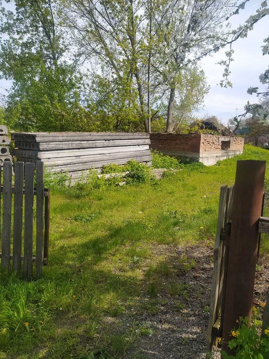 Продається садиба в м. Шпола; Садиба у м. Шпола, вул Колосовського, 1- А (Слідуюча паралельна вулиця за вет.лікарнею). Сама вулиця з асфальтним покриттям. На садибі знаходиться фундамент (з розрахунком на полупідвальне приміщення) наружним розміром 8,4 Х 10,4 м. Фундамент виконаний з 66 фундаментних блоків "5". 16 плит перекриття (1,5 Х 5,4 м. (8 шт.), та 1,5 Х 4,2 м. (8 шт.) Цегла червона і біла, повністю для побудови будинку. Всі будівельні матеріали нові. Є криниця. Підведена електрика (на даний момент відключена). На садибі висаджені плодові дерева- яблуні, абрикоси. Плодоносять. Загальна площа ділянки- 14,5 соток.