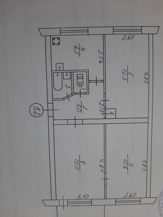 3-й этаж 5-ти этажного дома. Общая площадь 55,5 кв. м. 2 кладовки.