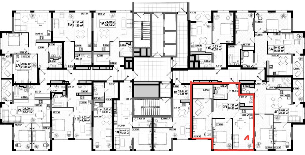 Поверх 22. Площа – 78,4 кв.м.