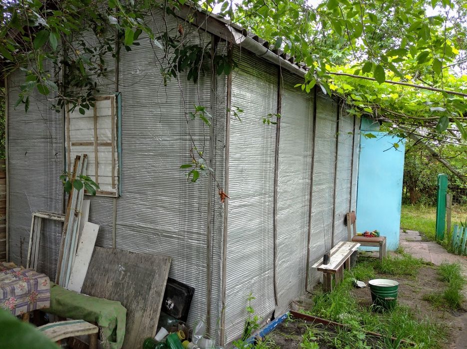 На ділянці є літній будиночок,але без світла. Будинок дерев'яний,оббитий утеплювачем. Приблизно 3м на 5 м. Можна підвести електрику,стовп за доміком.
