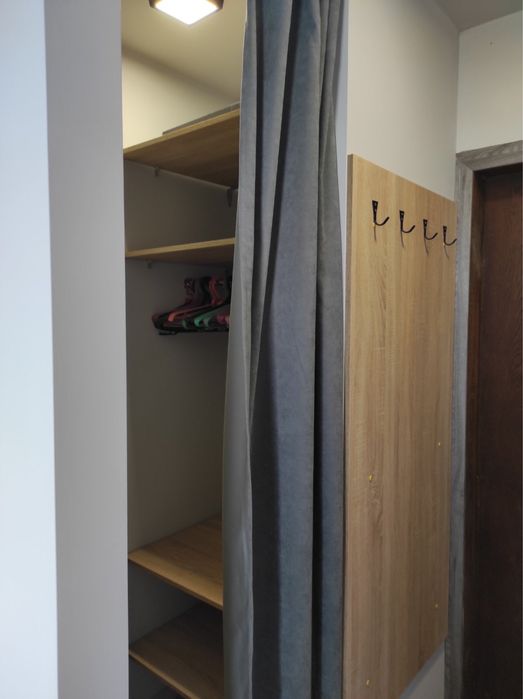 По проекту кімнату можна відділити великою шторою, або розїзною конструкцією при потребі.