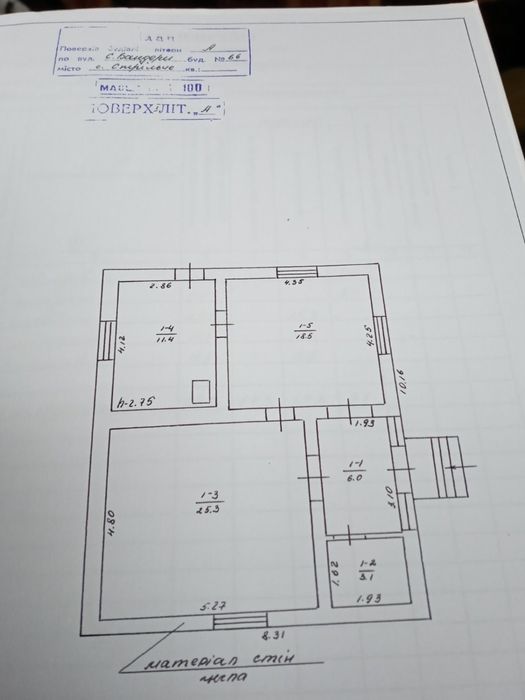 Є коридор,дві великі просторі кімнати,також ще одна кімната,з якої можна зробити ванну,також ще один коридор та кухня.Є також підвал та стрих.Будинок збудований в 1970-у році,з цегли та поштукатурений.