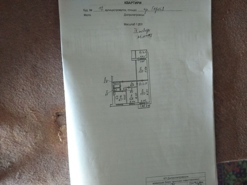 Амур-Нижньодніпровський ; Продам трёхкомнатную квартиру на победе 5; Продам трёхкомнатную квартиру под ремонт. Удобная развязка . Поликлиника супермаркеты стоянка. М/ п окна батареи чугун. Два балкона. Выход на пр. Героев счётчики вода газ отопление. Продажа от собственника