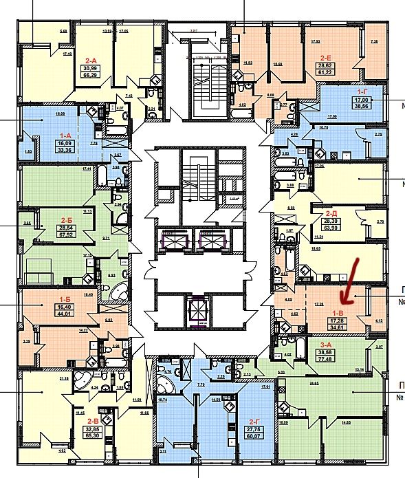 Площадь 34,61 м