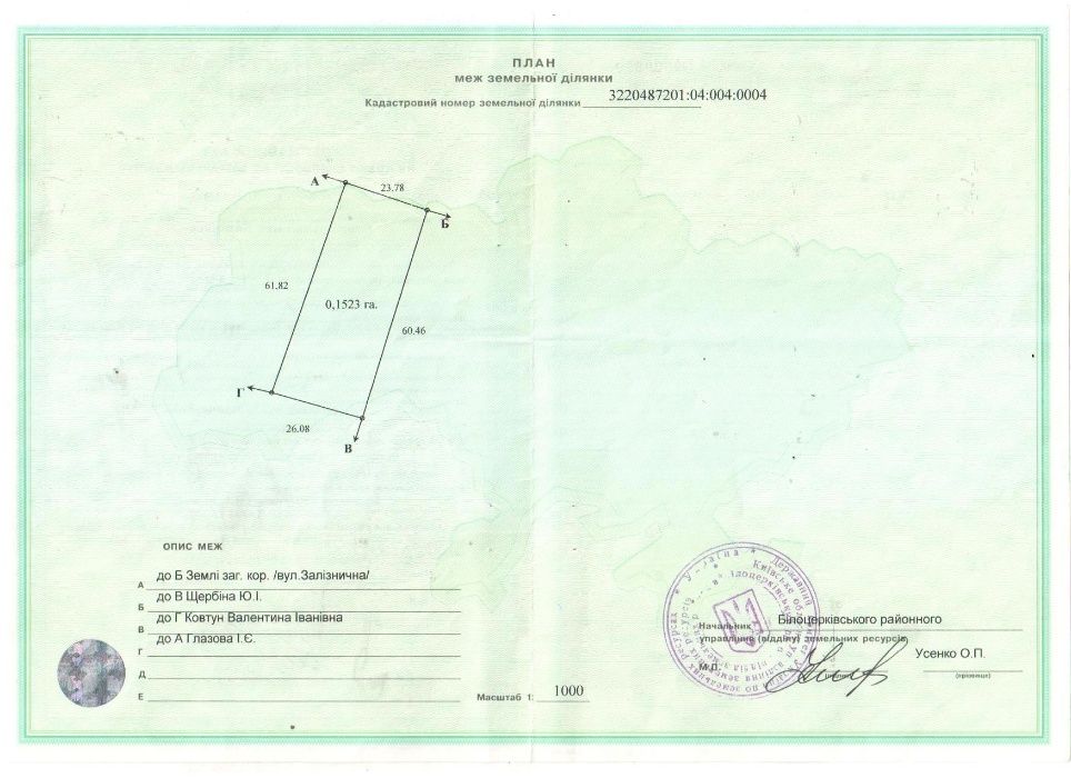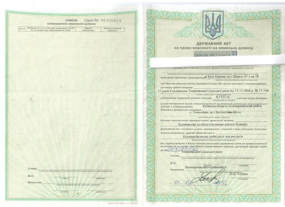 | Земельна ділянка: |