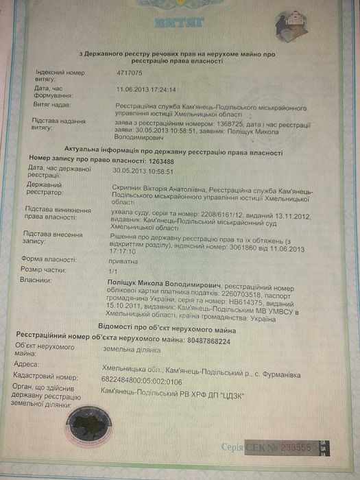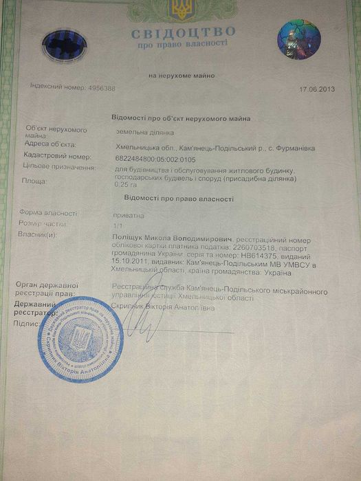 Прохання дзвонити мені з 08.00 – 12.00 або з 19.00 – 22.30. телефон 06******69 . У будь-якому випадку залишайте повідомлення, я передзвоню.; кадастровий номер: 6822484800:05:002:0105, 6822484800:05:002:0106,