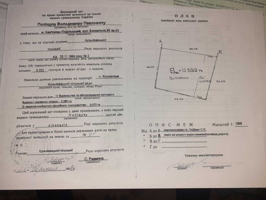 | Земельна ділянка: |