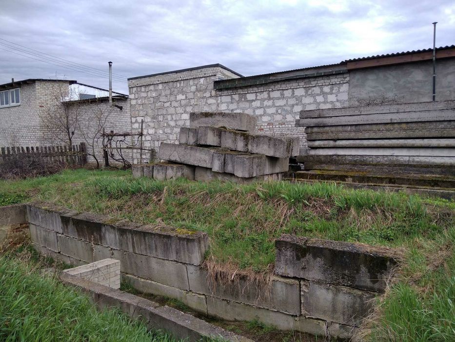 Заложен фундамент размером 10х7 метров. Участок продается вместе со стройматериалами (блоки, плиты перекрытия, балки). Рядом находится газопровод, вода и елетроенергия.