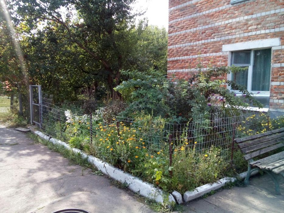 У гарному, спокійному місці. Є індивідуальний вихід та невеликий палісадник.