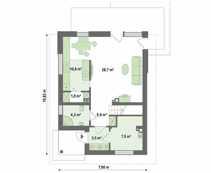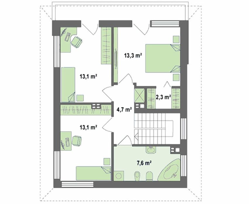 Артикул 4M350a Количество этажей: 2 Общая площадь: 113.60 м2 Высота дома:8.18 м Высота потолка: 2.80 м Угол наклона кровли: 22 ° Площадь крыши:114.00 м2 Кубатура: 302.00 м3 Количество спален: 3 Количество санузлов: 2