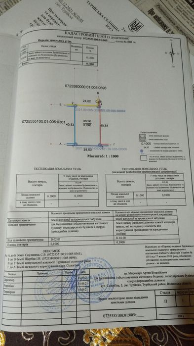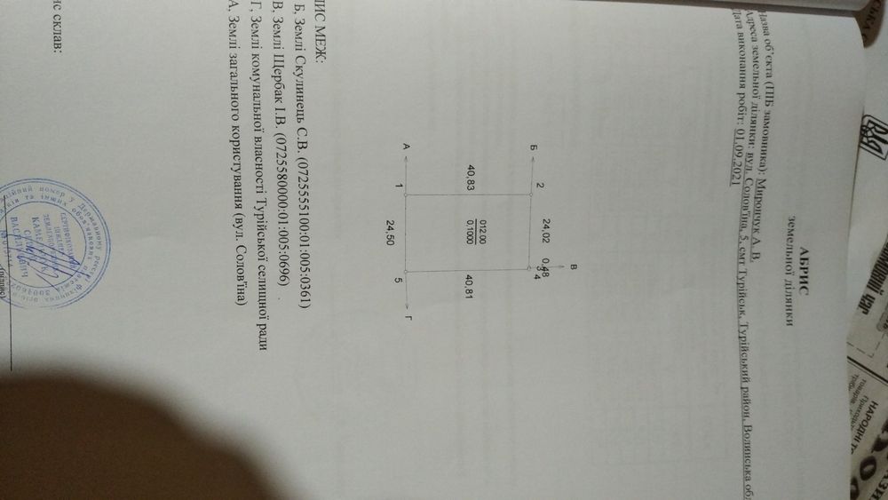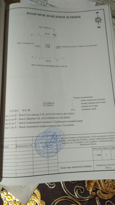 Продам участок смт Турійськ; Продам участок 10 сот смт Турійськ участок під забудову земля приватизована вул Солов'їна 5а по вулици Мисливська, в кінци 09******70. 06******42; кадастровий номер: 0725580000010050033