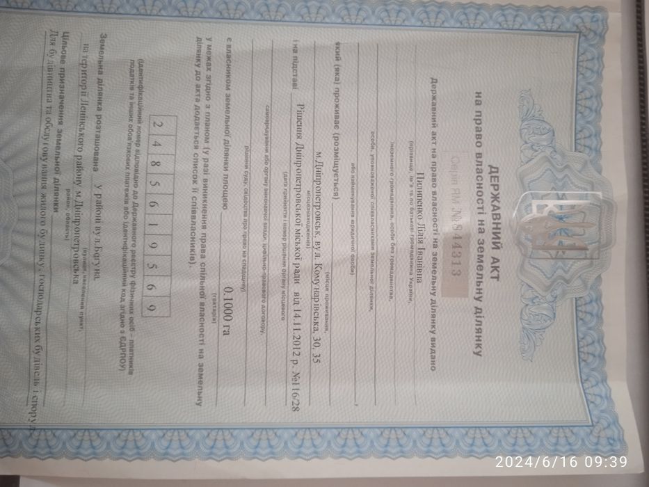 Новокодацький; Продам земельные участки; Продам два участка по ул.богуна 2диевка по ул.мукачева верх через переезд .кадастровый номер приватизированные по 10 соток каждый на один участок есть документы на электроэнергию.; кадастровий номер: 1210100000082280019