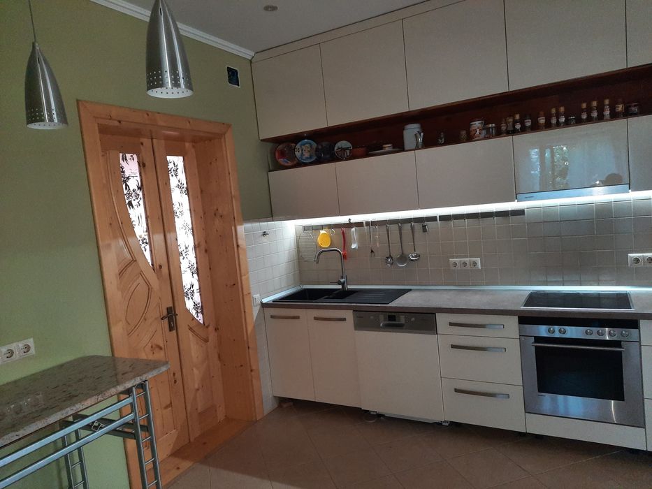 Під будинком є великий підвал(поділений на комори) і гараж.