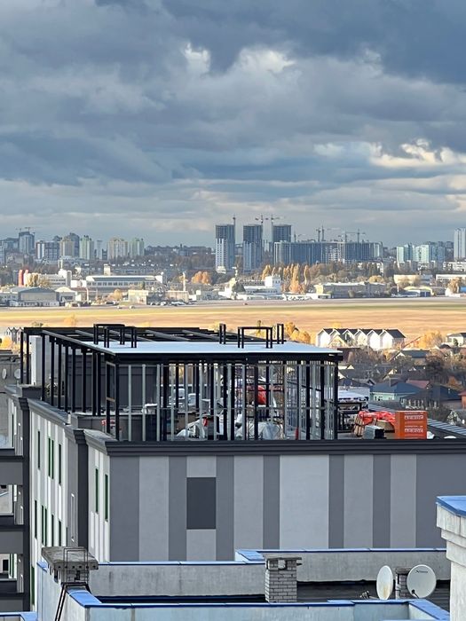 Відкритий простір на верхньому поверсі дає можливість на 360 градусів милуватись Києвом, видами на Жуляни та Виставковий центр.