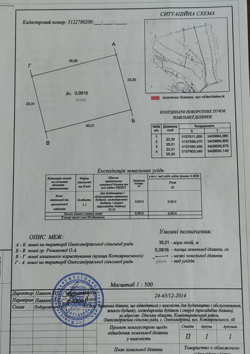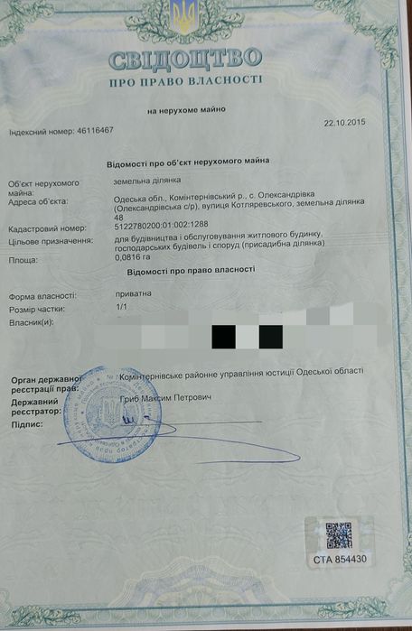 | Земельна ділянка: |