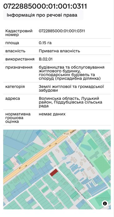 Ділянка 15 сот. з будинком в с. Піддубці. 10 км. до м. Луцька; Продам земельну ділянку 15 соток в с. Піддубці, Луцького району, Волинської області, вул. Козацька, що в 10 км. від м. Луцька. Траса Луцьк-Рівне. На земельній ділянці є новий збірний панельний 2-х поверховий будинок - котедж в розібраному стані, який ніколи не збирався, часів 90-х років з якісного керамзиту та бетону. Термін будівництва такого будинку займе не більше двох місяців. Крім того є план на будинок (фото 14, 15), зроблений в інституті будівництва з подетальним обміром всіх панелей, а також спеціалісти по його будівництву. По вулиці є електрика, газ. Сусіди побудовані. Неподалік за 200 м. школа, за 400 м. Дитсадок. Село розвинуте інфраструктурою. Деталі по телефону. Дзвоніть. Торг на місці з реальним покупцем!!! (https://map.land.gov.ua/kadastrova-karta 0722885000:01:001:0311) Все видно тут.