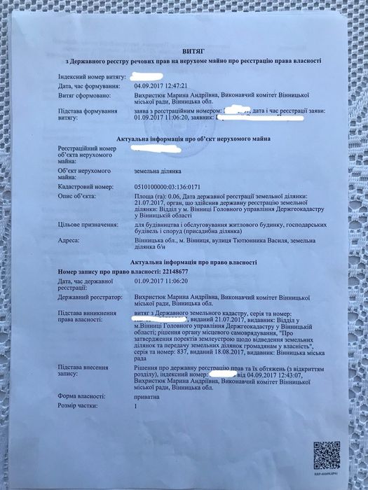 | Земельна ділянка: |