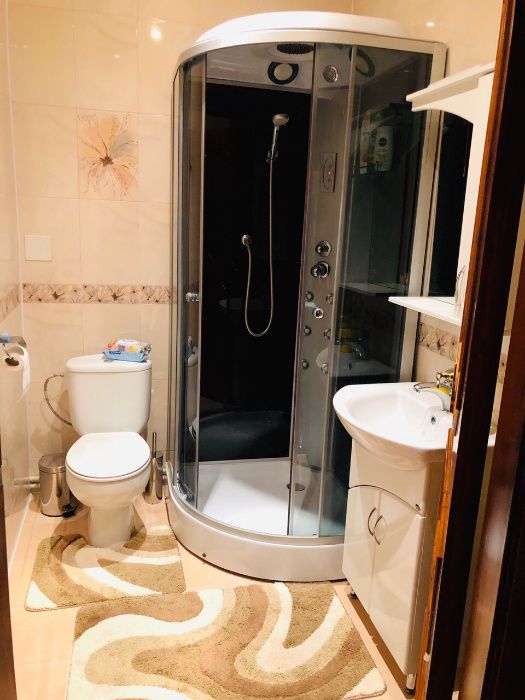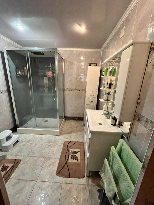 На першому поверсі окремо ванна кімната (душова кабіна) та туалет, на другому - туалет та душова кабіна разом.