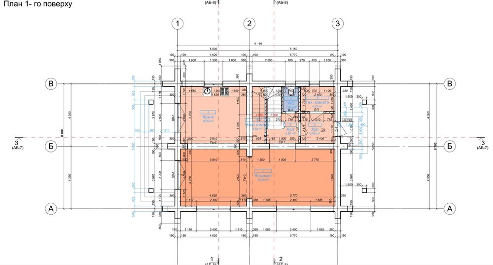 Перший поверх - вітальня з кухнею + комора + санвузол + технічна кімната + дві зовнішні тераси. Підлога - натуральний мармолеум з водяним підігрівом.