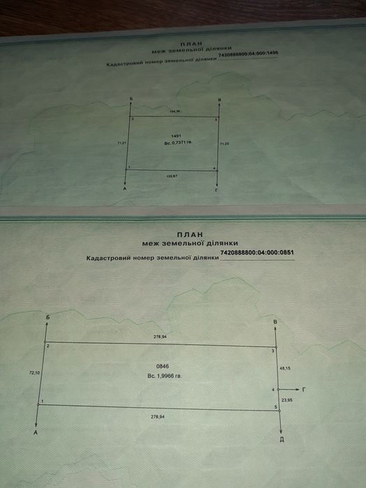 ОСГ ділянка 2.7га. Ціна за 2 ділянки.; ОСГ ділянка 2.7га. с Хороше Озеро, Крутівська ОТГ, Чернігівська область Продам 2 пая 1,9966 га. та 0,7371га. Кадастрові номера та форма ділянок на фото. Право власності по спадку договір оренди до 2028р. але давно не перепідписувався. тому орендна плата +/- 5000грн. Земля обробляється, чернозем. Є державні акти та кадастрові номера. Призначення ведення товарного сільськогосподарського виробництва.