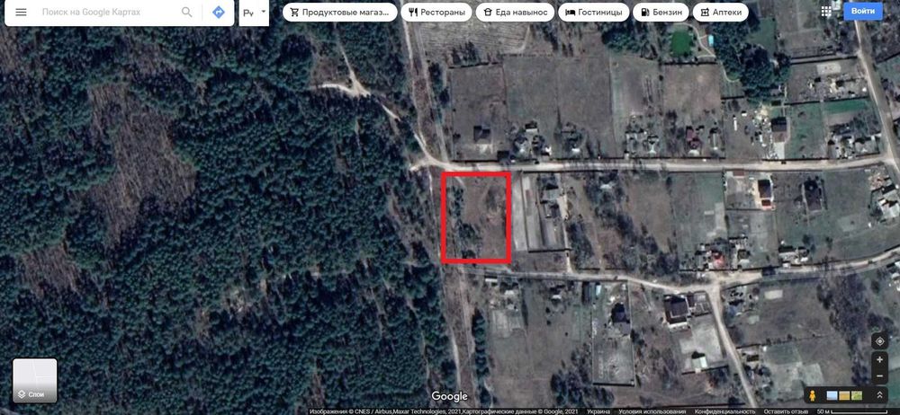 Крайня ділянка по вулиці, далі тільки ліс. Ділянка рівна , правильної форми. Межує з сосновим лісом. Газ, світло поруч, під"їзд асфальт + 300м грунтова дорога. Ділянки поруч продані.