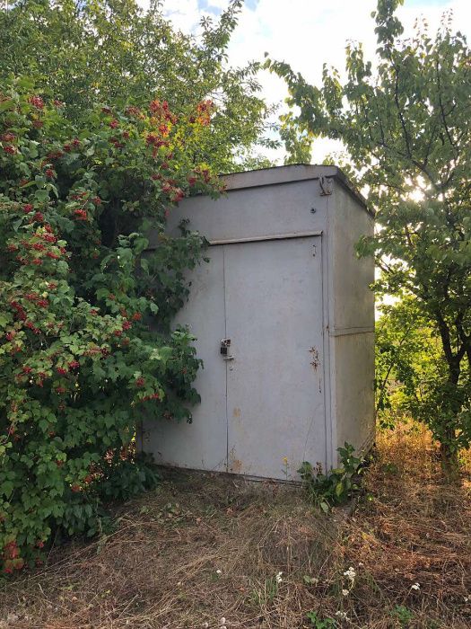 Имеются также строительные материалы, большая металлическая буда с инструментами для обработки земли, на участке есть металлический туалет. Оформление документов , на покупку участка , - за счёт покупателя .