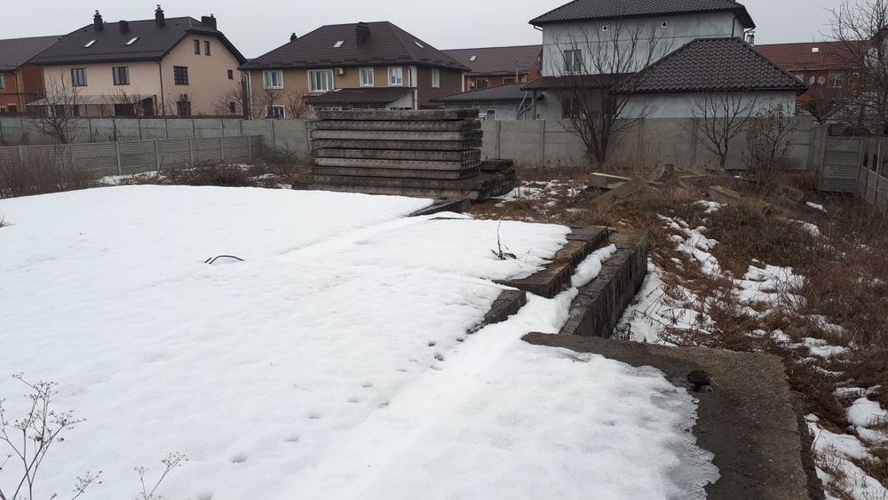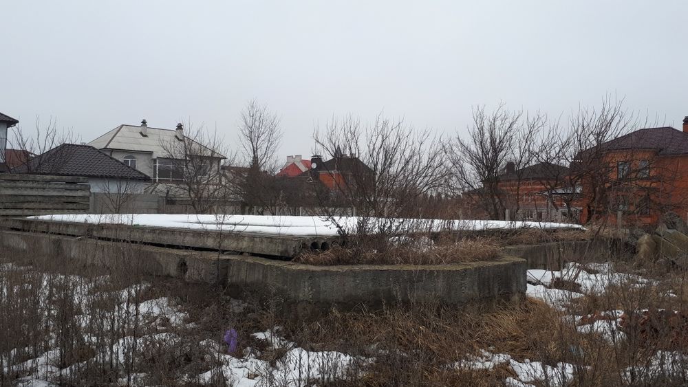 На тереторії є фундамент з проектом на будинок та свердловина, металевий гараж з білою цеглою та плити перекриття (додаються до ділянки)