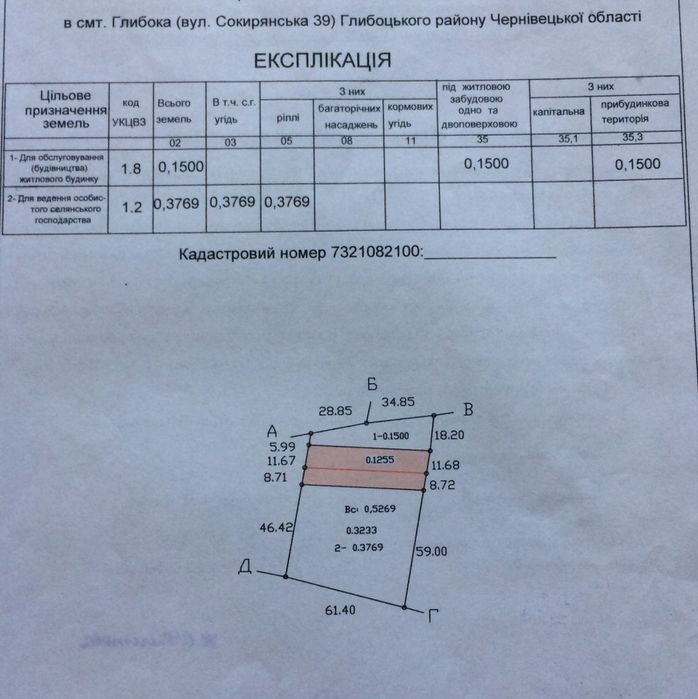 Зем. ділянка в смт.Глибока,0,52 га.(обмін); Продам земельну ділянку в смт. Глибока по вул. Сокирянська в житловому районі загальною площею 0,52 га., 015 га. під будівництво 0.37 га. для ведення господарства. Ділянка рівна оформлена як з будинком та відкритим номером, є фундамент та криниця. Документи оформлені належним чином.
