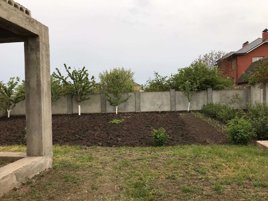 Участок правильной формы 10 соток, заведены свет и вода, каменный забор с 3-х сторон, сад возле дома, выгребная яма на 8 кубов, колодец на 12 кубов.