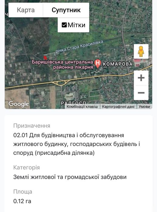 Площа: 0.12 га . Є геомітки, якщо потрібно скину в особисті.