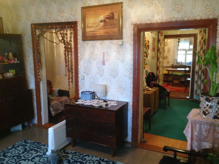 Черниговская обл. Репкинский р-н пгт. Любеч; Старинный деревянный дом священника, разделен на три квартиры. Предлагаемая квартира в середине, поэтому двух стен обогревать не требуется. Крыша перекрыта новым шифером. Возле крыльца есть кран водопровода, без счетчика. Квартира приватизирована. На землю на всех жильцов оформлен договор аренды площади 0,15га . Просторный двор, кирпичный сарай, просторный походный погреб для всех жильцов, но разбит на индивидуальные независимые отделения. Мебель частично. Отопление газовое, два газовых конвектора. Все документы в порядке. Место тихое, недалеко от центра. Рядом есть участок земли, но это отделньый разговор.