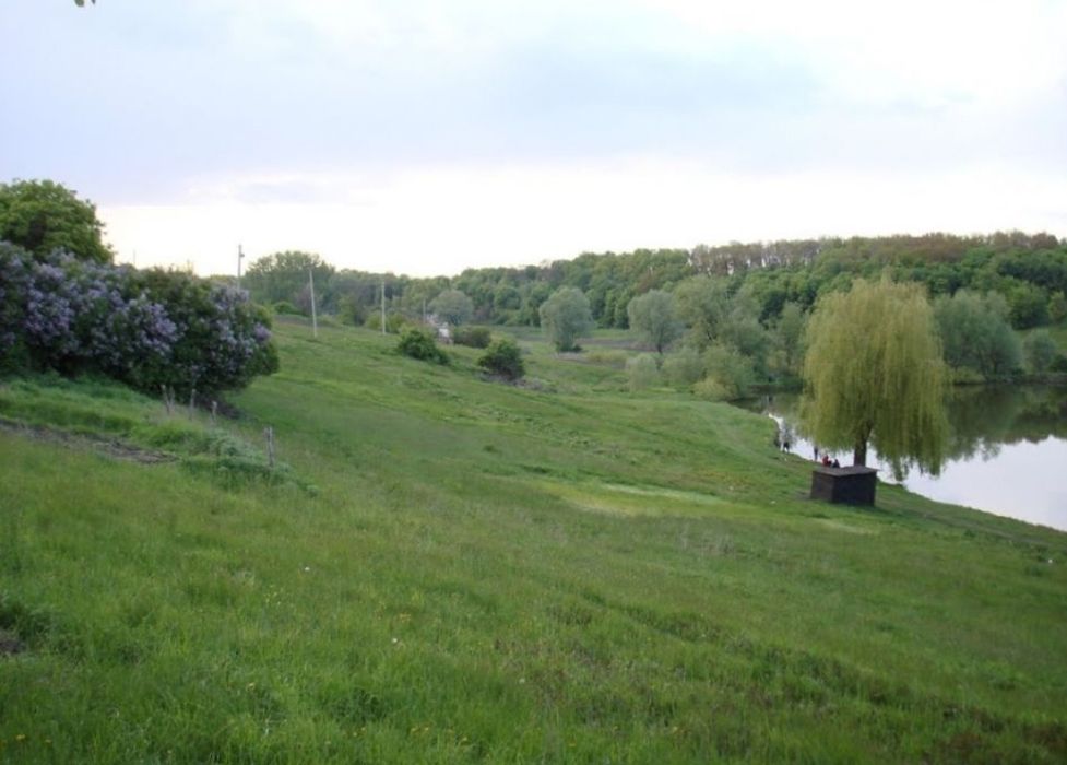Участок рівний, внизу ставки, ліс.