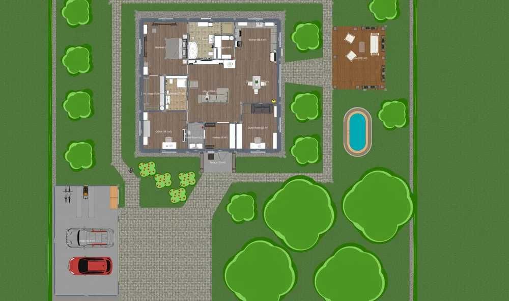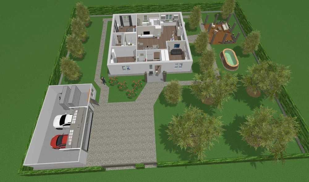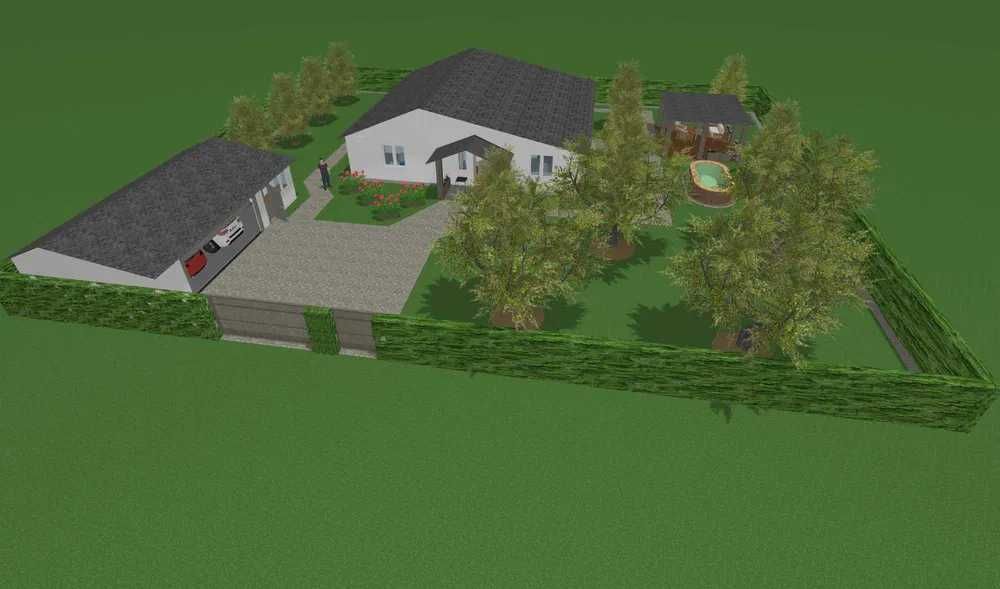 - 3D модель ділянки з будинком, гаражем і альтанкою