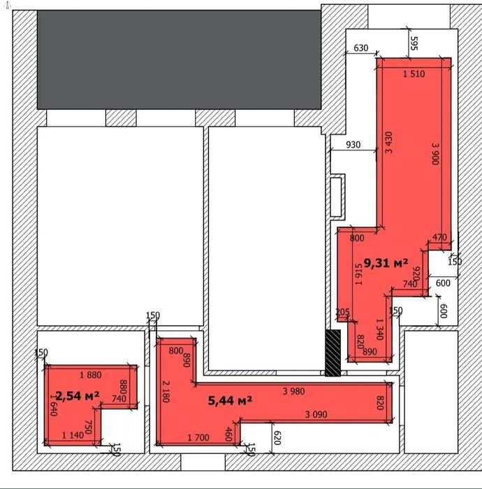 Внешняя сторона - боковой вид моря. Площадь 63,5 кв м. Высота потолка 3м.