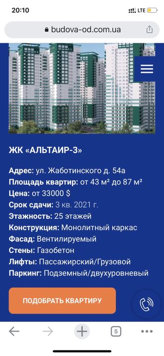 Київський; Срочно продам 2-х комнатную квартиру от хозяина; Срочно продам 2 - комнатную квартиру в новострое в ЖК Альтаир -3 от собственника, комнаты раздельные, есть балкон, общая площадь 63 кв. м.Дом построен! Сдача дома в експлуатацию 3 квартал 2024года.