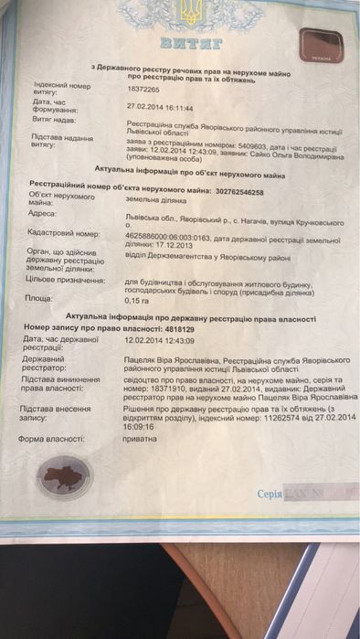 продам землю Львівська область Яворівський район село Нагачів