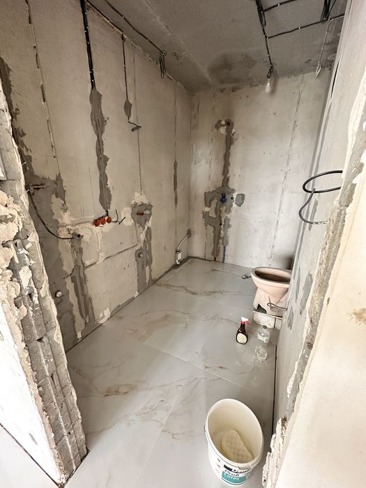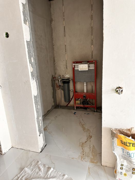 В квартире проведена канализация, установлен фильтр воды. установлены все встроеные части по сантехнике .