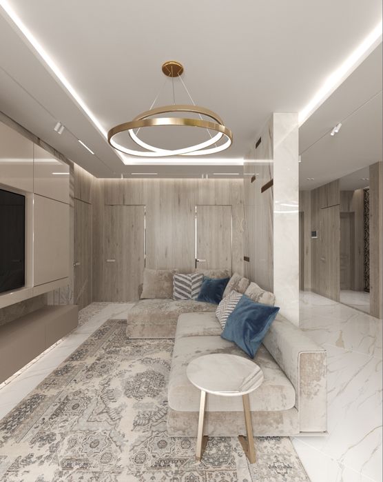 В квартире сделан демонтаж. Проведена вся электрика и сантехника . Сделаны отделочные работы . Есть подводка сплит систем 3х кондиционеров фирмы GH Для каждой комнаты .