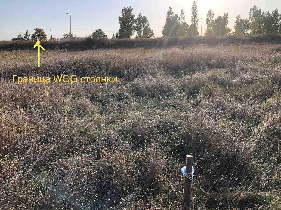 Ділянка вздовж траси Р06/М14 на Київ із Миколаєва, за заправкою WOG. Ділянка починається де закінчується стоянка для великовантажів біля заправки WOG. На фото кілочків з маскою - це крайня ліва точка/кут ділянки.