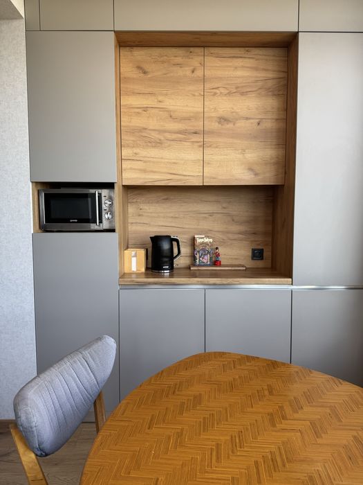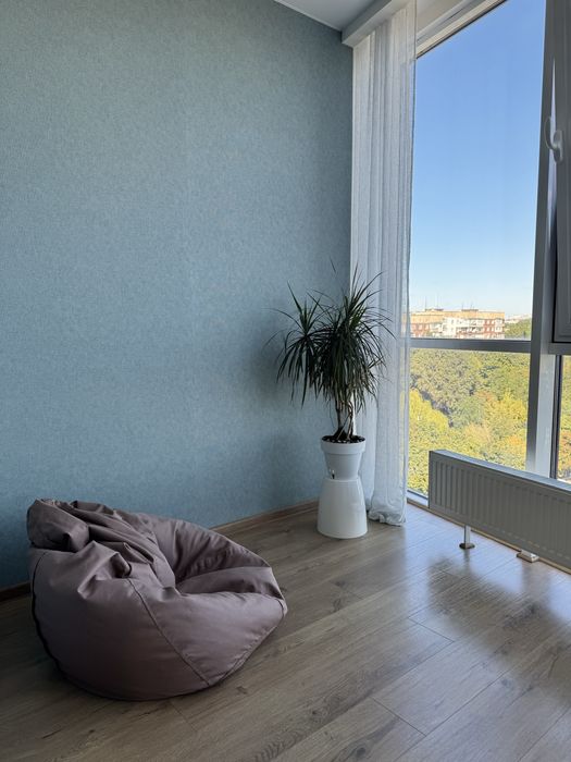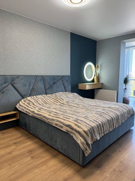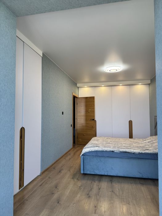 Кухня-студія зі столовою зоною та зоною відпочинку, гардеробна, велика та простора спальня із можливістю облаштування кабінету або дитячої.